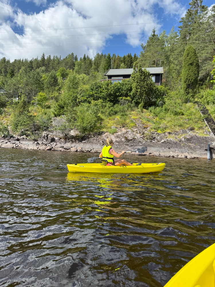 Vom Haus aus, gelangt man über einen verwunschenen Trampelpfad und eine steile alte Holztreppe direkt zum See hinunter, wo man sich eine Erfrischung im kalten Wasser gönnen kann und unsere beiden Kajaks vorfindet. Wer lieber einen leicht zugänglichen Strand bevorzugt, wird in Jevnaker fündig (z.B. Nøklebytangen oder Nordbytangen, nach nur rund 10min Autofahrt zu erreichen).